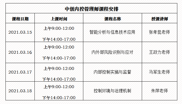 中国财政科学研究院培训中心内控管理师(ICM)专业能力培训课程2021年第一期线上培训及考试隆重开班,具体安排如下: