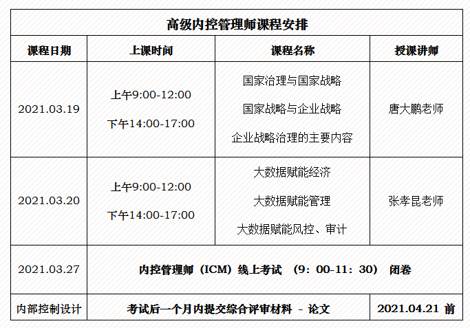 注:请于 2021 年 03月 07 日(星期日)前,将学员报名资料提交至内控管理师(ICM)项目管理办公室。